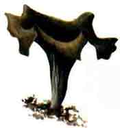 Έχει σχήμα κέρατος ή χωνιού. Η κεφαλή του είναι σκληρή, σκούρα καφέ, ζαρωμένη, διαμέτρου 3-5 εκ. Ο κορμός είναι λείος, γκρίζος και λεπταίνει προς την κορυφή. Φυτρώνει στα δάση κοντά σε δέντρα που ζουν πολλά χρόνια όπως η βελανιδιά. Αναπτύσσεται την περίοδο του φθινοπώρου. Σιγοβράστε τους για πολλή ώρα ή αποξηράνετε τους.