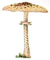 Έχει μια κυλινδρική κεφαλή με άσπρες ή πολύ ανοιχτές καφέ κηλίδες και βράγχια ποτ στην αρχή είναι λευκά, αργότερα ροζ και στο τέλος μετατρέπονται σε μαύρα. Φυτρώνουν σε συστοιχίες, σε χλοερές περιοχές, το καλοκαίρι και το φθινόπωρο. Να μαζεύετε νεαρά φυτά που τα βράγχια τους είναι ακόμη ανοιχτόχρωμα. Μετατρέπονται σε ΔΗΛΗΤΗΡΙΩΔΗ, αν συνοδεύετε το φαγητό σας με ποτό.