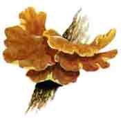 Αναπτύσσεται κατά πλάτος, 30-40 εκ. πάνω σε αειθαλή δέντρα που ζουν πολλά χρόνια, όπως η βελανιδιά. κατά το καλοκαίρι ή μετά. Έχει έντονο πορτοκαλί ή κίτρινο χρώμα, που ορισμένες φορές είναι πιο ξεθωριασμένο
