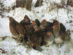 Οι πέρδικες είναι ανθεκτικά πουλιά. Μπορούν με το αποθηκευμένο λίπος μόνο, να αντέξουν τρεις μέρες χωρίς τροφή στους -18οC. Σε μαλακό χιόνι μπορούν να σκάψουν για τροφή μέχρι βάθος 35 εκ. Μόνο όταν παγώσει το χιόνι έχουν πρόβλημα και παρατηρούνται μαζικοί θάνατοι. Όταν είναι να κοιμηθούν και κάνει πολύ κρυό, μαζεύονται όλες μαζί δίπλα-δίπλα. Όταν το χιόνι είναι πάνω από 30 εκ., σηκώνονται στον αέρα, παίρνουν ύψους, βουτούν μέσα στο χιόνι και παραμένουν στις τρύπες αυτές, όπου η θερμοκρασία είναι 2-3οC υψηλότερη.