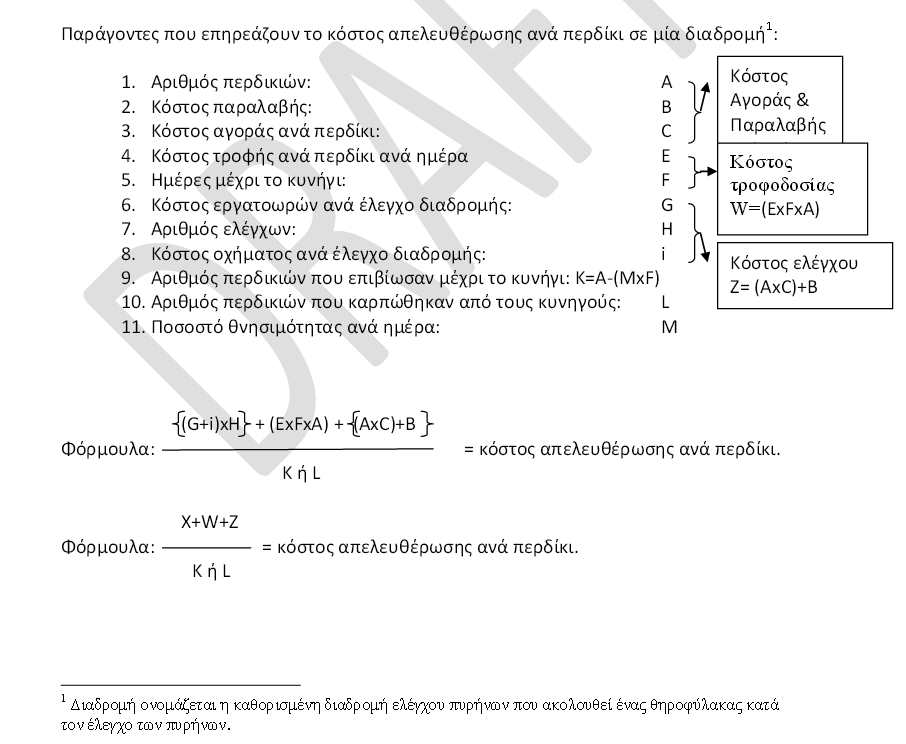 απελευθέρωσης ανά περδίκι καθώς και φόρμουλα υπολογισμού του κόστους ανά