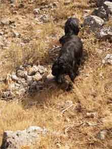 Τα σκυλιά αρχίζουν την δουλειά τους γρήγορα και άμεσα , μετά από ένα τέταρτο έχω τις πρώτες ενδείξεις παρουσίας περδίκων από τα σκυλιά .