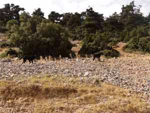 Αρχίζει η κατάβαση αλλά αυτό που με ανησυχεί είναι ότι στην απέναντι πλαγιά πλησιάζουν βόσκοντας ένα κοπάδι γίδια .